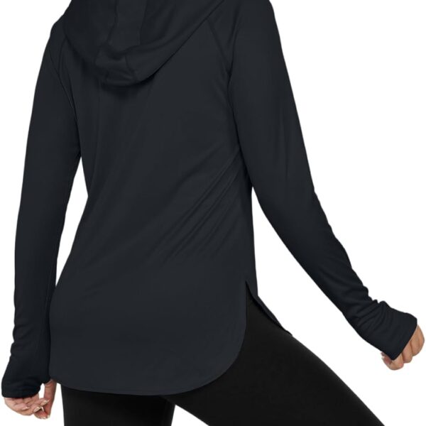 - [Hidden Horsetail Hole] Get extra sun protection with our sun shirts that come with a hood and thumb holes. Perfect for those who can’t stand the heat or are too lazy for sunscreen.